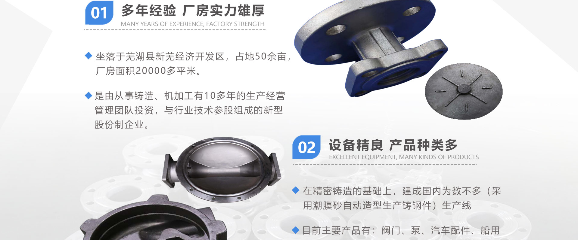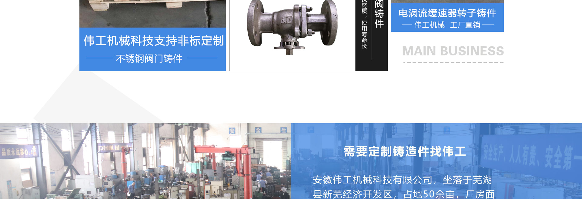 安徽偉工機械科技有限公司,坐落于安徽蕪湖新蕪經(jīng)濟開發(fā)區(qū),是一家専業(yè)從事鑄造產(chǎn)品設(shè)計、研發(fā)、生產(chǎn)、銷售于一體的企業(yè),公司為客戶的產(chǎn)品提供多樣的技術(shù)支持與設(shè)計,公司主要鑄造技術(shù)有潮模砂鑄造、硅溶膠精鑄工藝。主要產(chǎn)品有:不銹鋼閥門配件、泵閥配件、汽車配件、工業(yè)管道配件、工程機械配件、汽車配件等。材質(zhì)為:低合金鋼、304、316、316L、鉻鉬鋼、哈氏合金、碳鋼、雙相鋼等。公司已先后通過ISO9001和TS16949等多種體系審核,以完備的管理手段和齊全的檢測設(shè)備滿足客戶需求,進的設(shè)備,専業(yè)的技術(shù),嚴(yán)謹(jǐn)?shù)墓芾?,穩(wěn)定的質(zhì)量。服務(wù)客戶,鑄造未來,偉工誠摯的歡迎新老客戶共同商洽合作